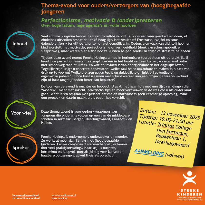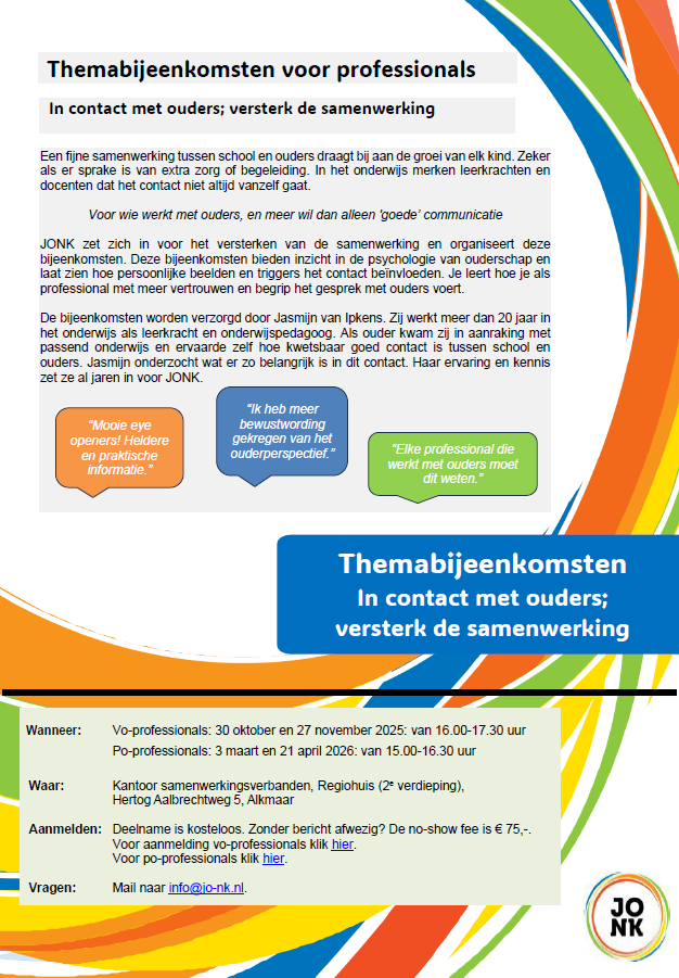 Op donderdag 6 februari ben je van harte welkom bij PPO-NK (samenwerkingsverband passend primair onderwijs Noord-Kennemerland) en het samenwerkingsverband vo Noord-Kennemerland in Alkmaar.
